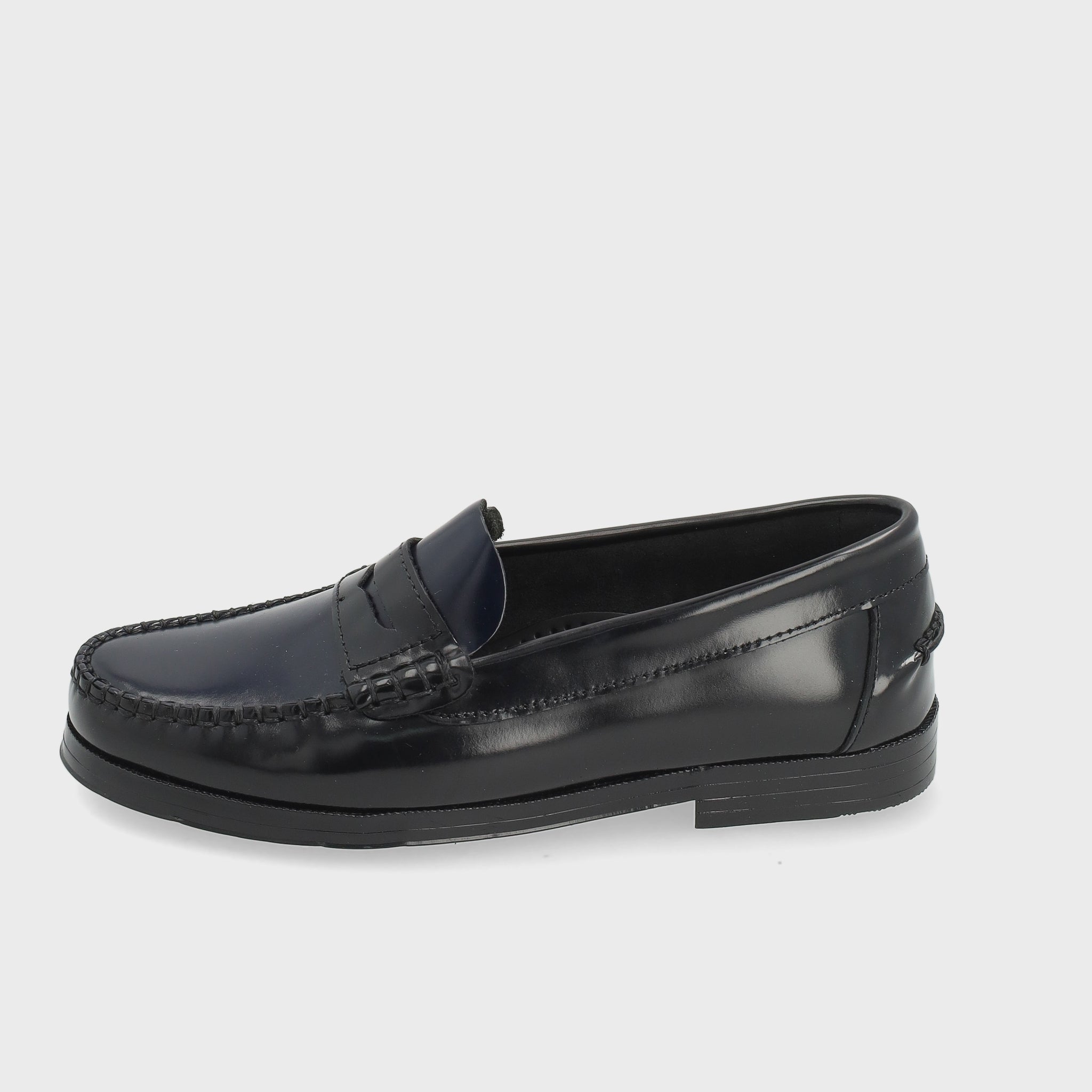 - Piel vacuna en combinación negro y marino, con acabado artesanal